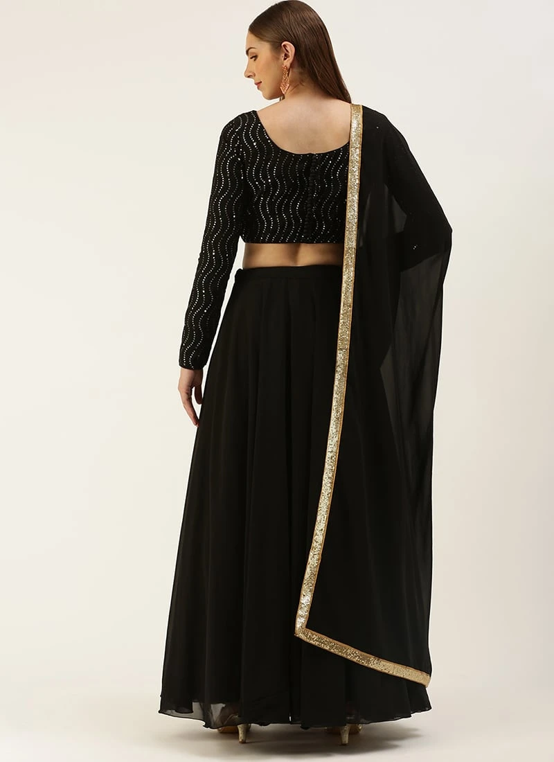 Teen Girls Black Embroidered Sequins Lehenga Festive Wear