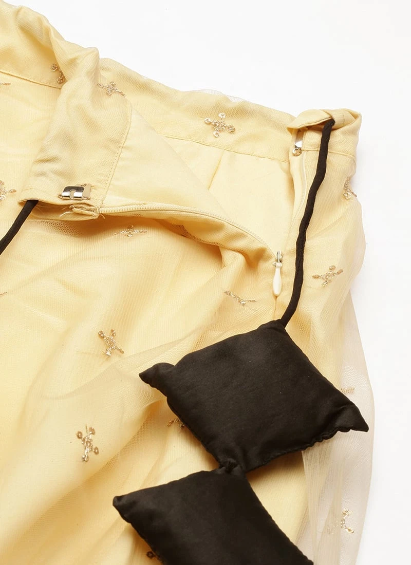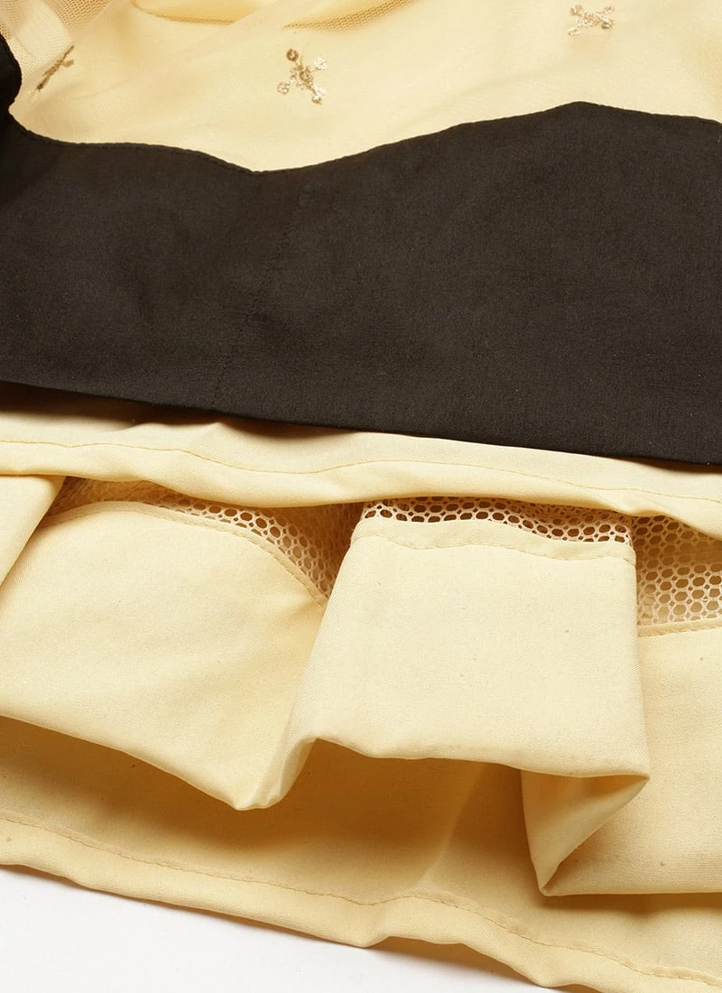 Teen Girls Black Georgette Mirror Embroidery Beige Lehenga Festive Wear