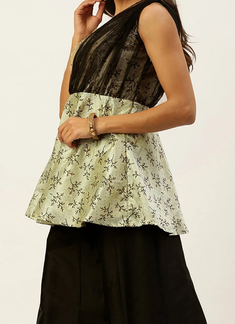Teen Girls Black N Off White Kali Palazzo Set Festive Wear