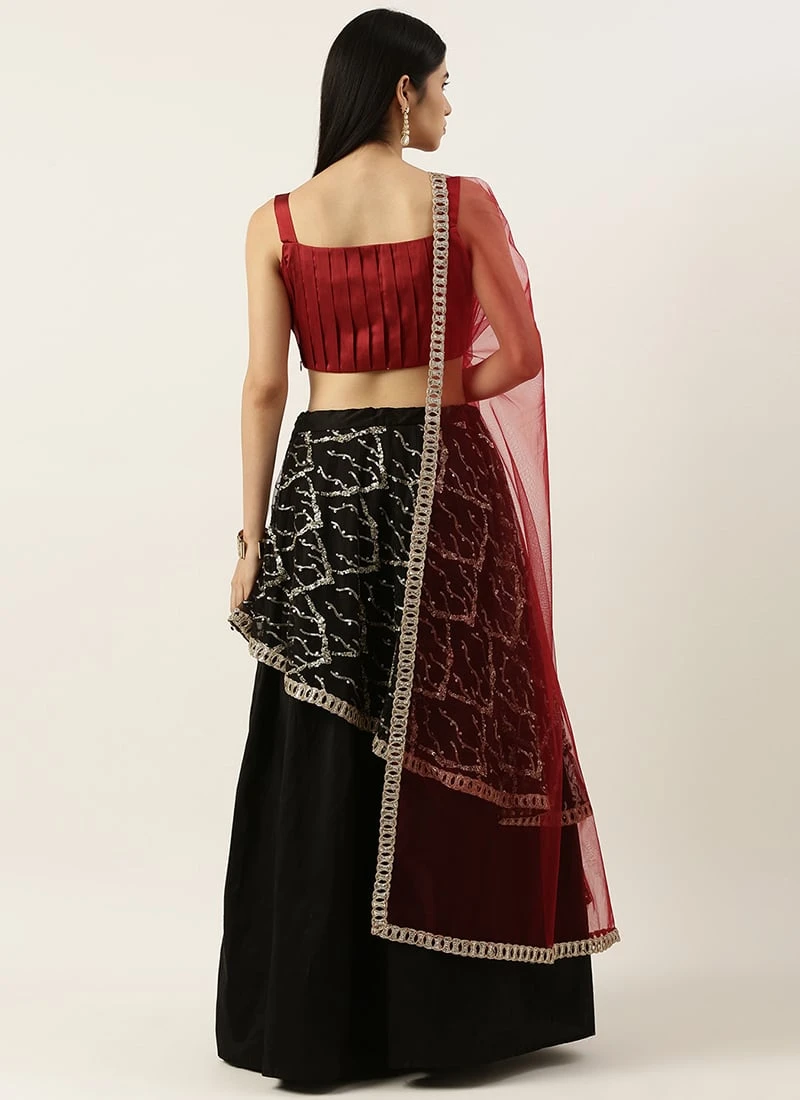Teen Girls Black N Red Pleated Lehenga Set Party Wear