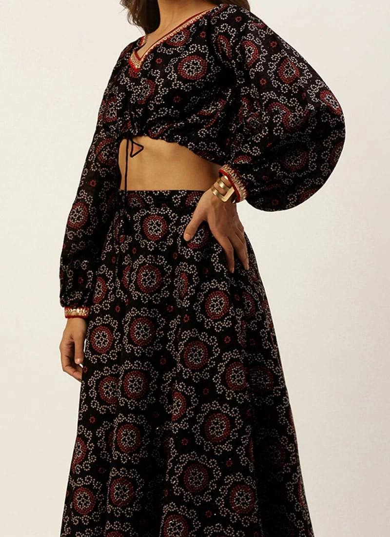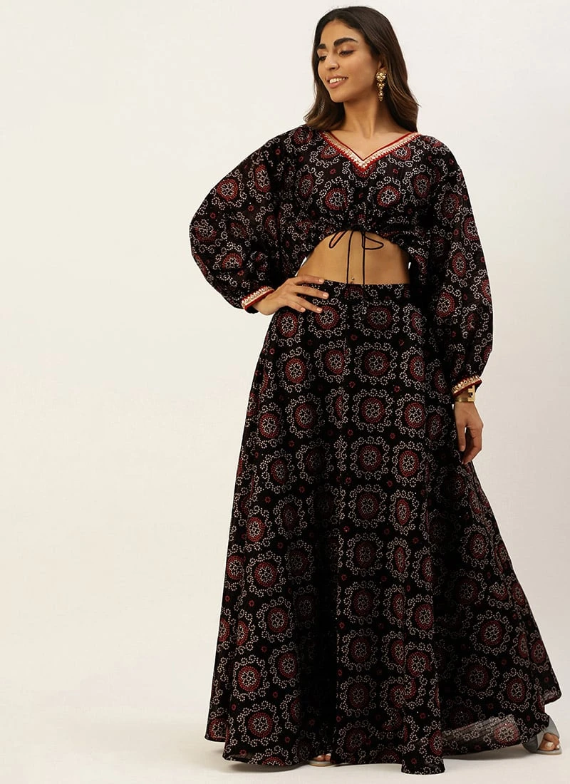 Teen Girls Black Printed Art Silk Co Ords Set Festive Wear