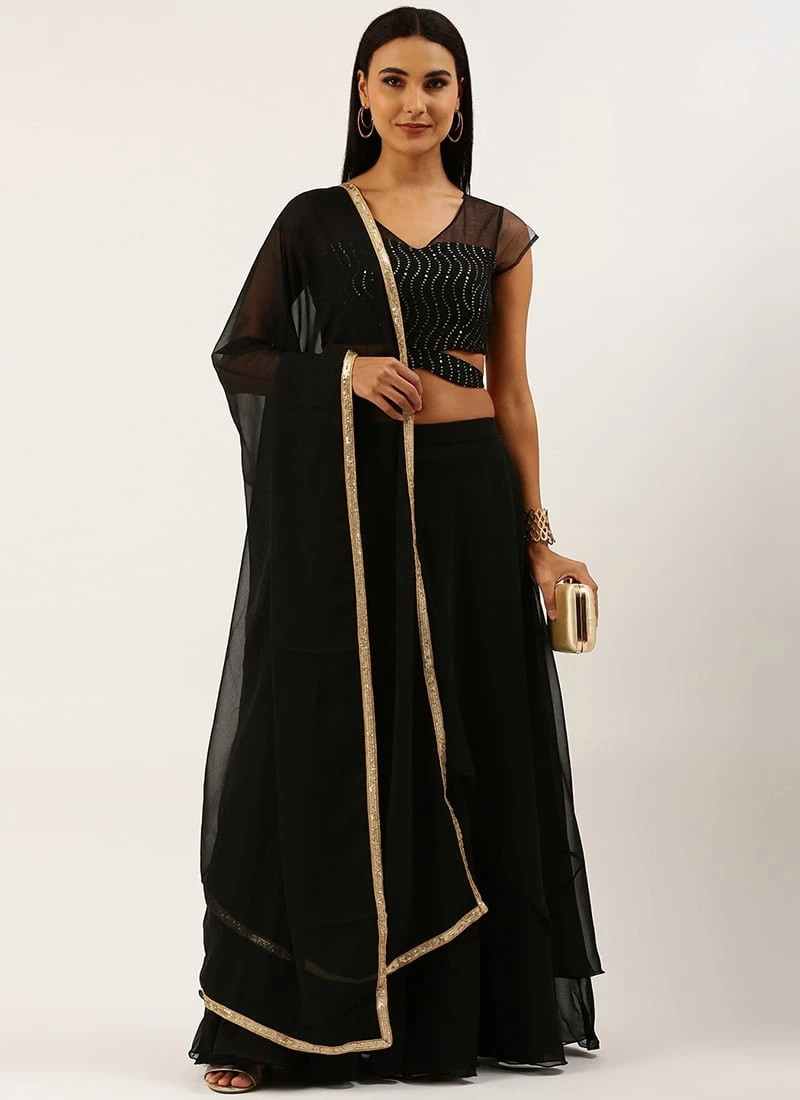 Teen Girls Black Sequins Embroidered Lehenga Festive Wear
