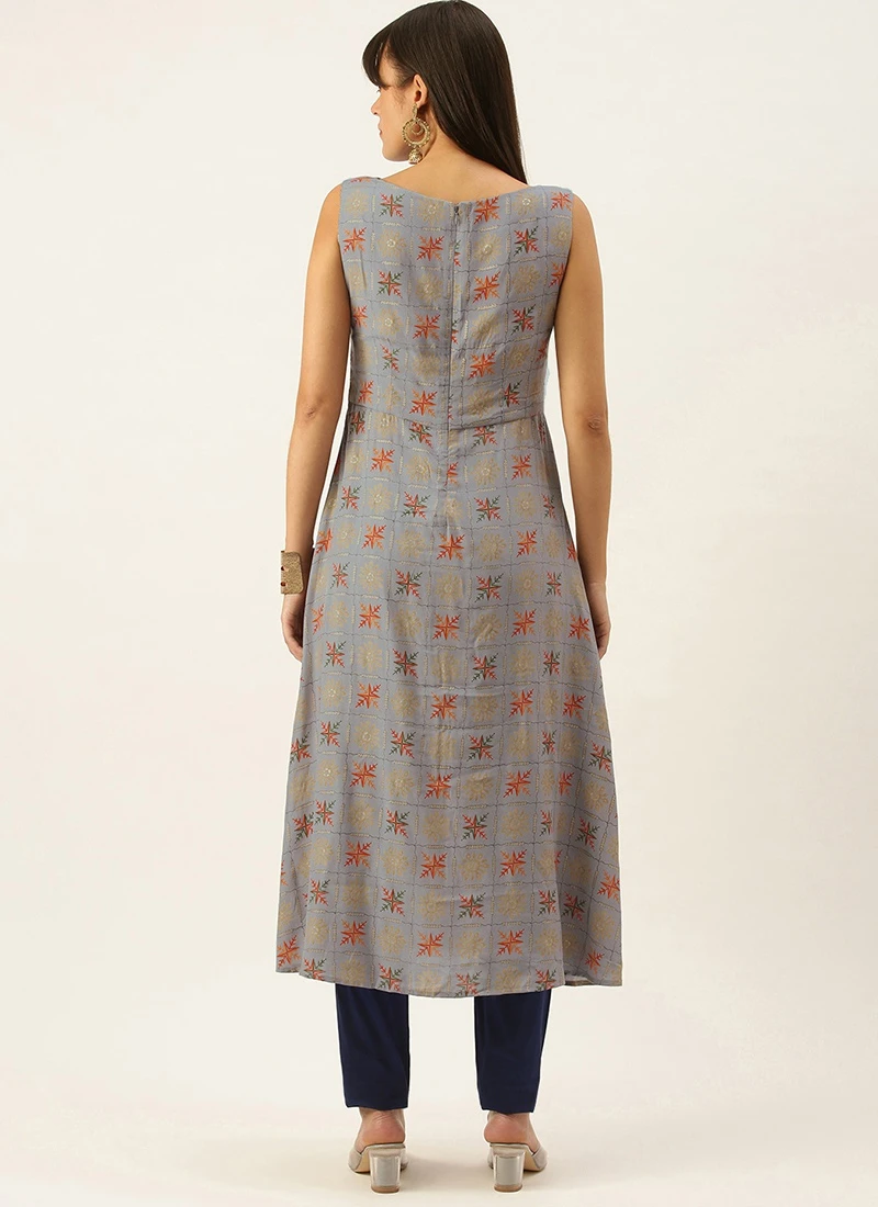 Teen Girls Blue Foil N Skipper Blue Kurta Straight Pant Set After Six Wear