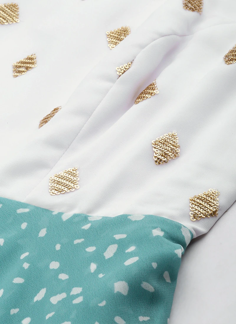 Teen Girls Blue N White Georgette Handkerchief Style Gown Festive Wear