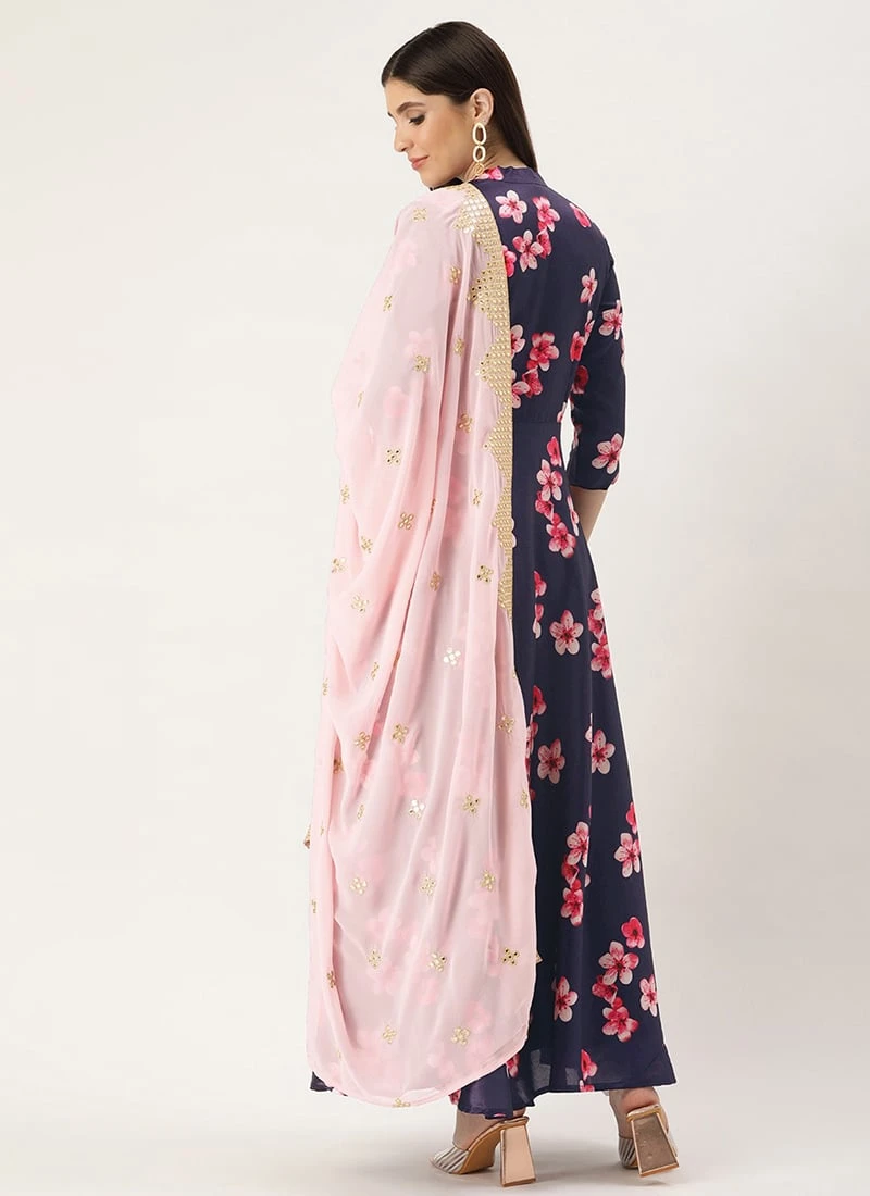 Teen Girls Blue Printed N Mauve Georgette Anarkali Suit Festive Wear