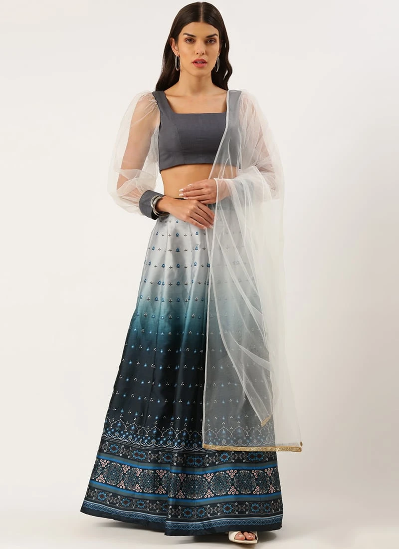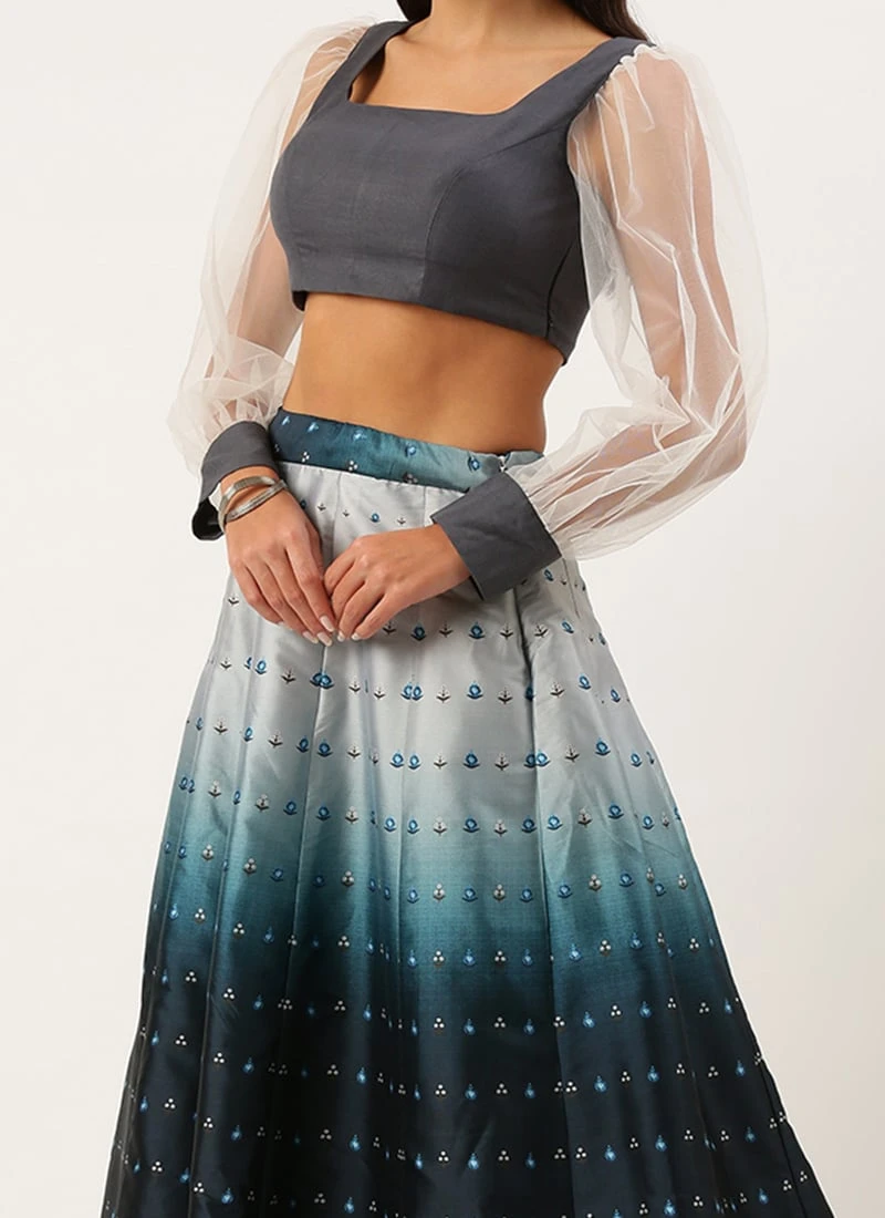 Teen Girls Blue Taffeta Digital Print Kali Lehenga Festive Wear