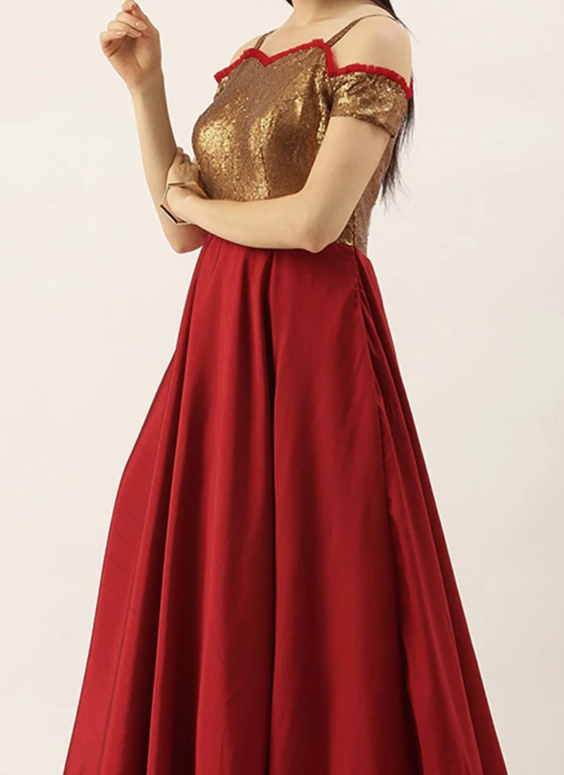 Teen Girls Brown N Maroon Sequins Georgette Floor Length Gown Party Wear
