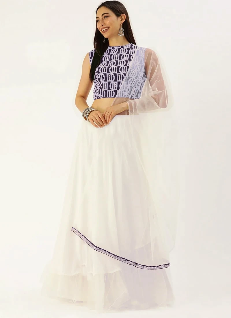 Teen Girls Dark Blue N White Embroidered Floor Length Lehenga Party Wear