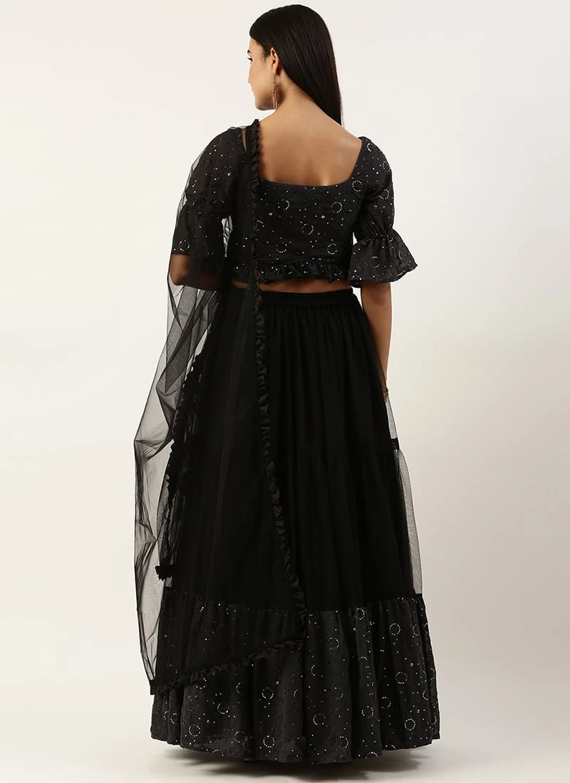 Teen Girls Dark Grey Georgette Sequins Embroidered N Black Net Lehenga Festive Wear