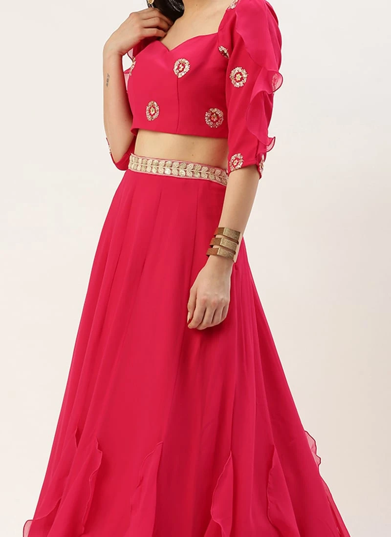 Teen Girls Dark Pink Embroidered Ruffles Style Skirt Set Wedding Wear