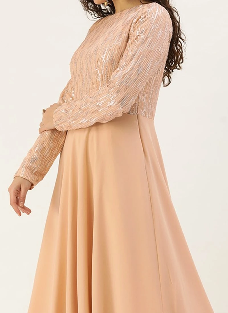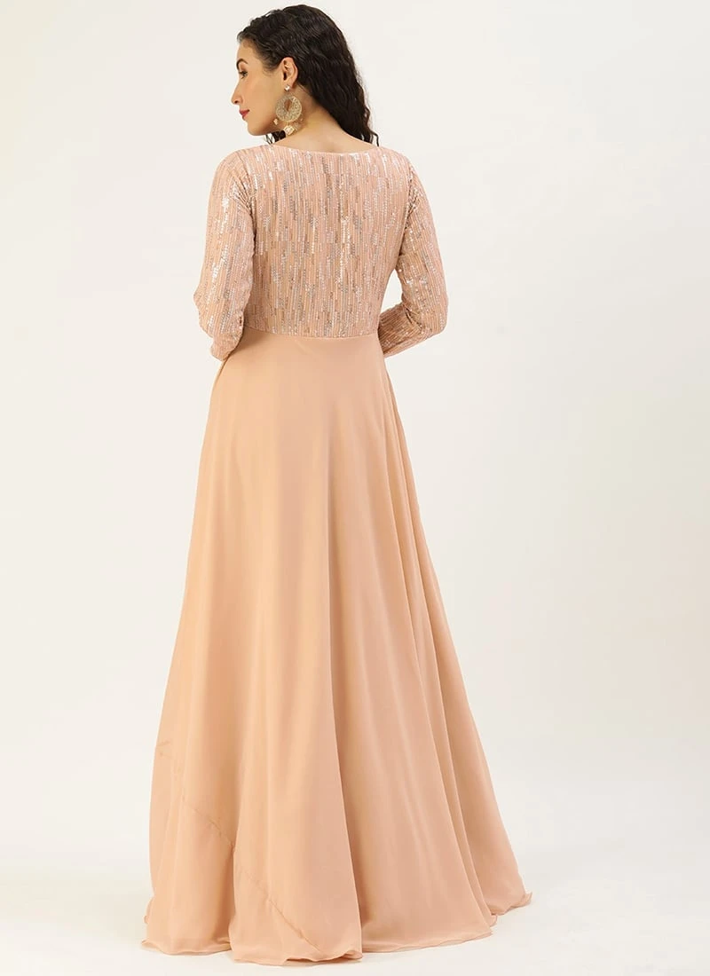 Teen Girls Dusty Pale Peach Embroidered Gown Party Wear