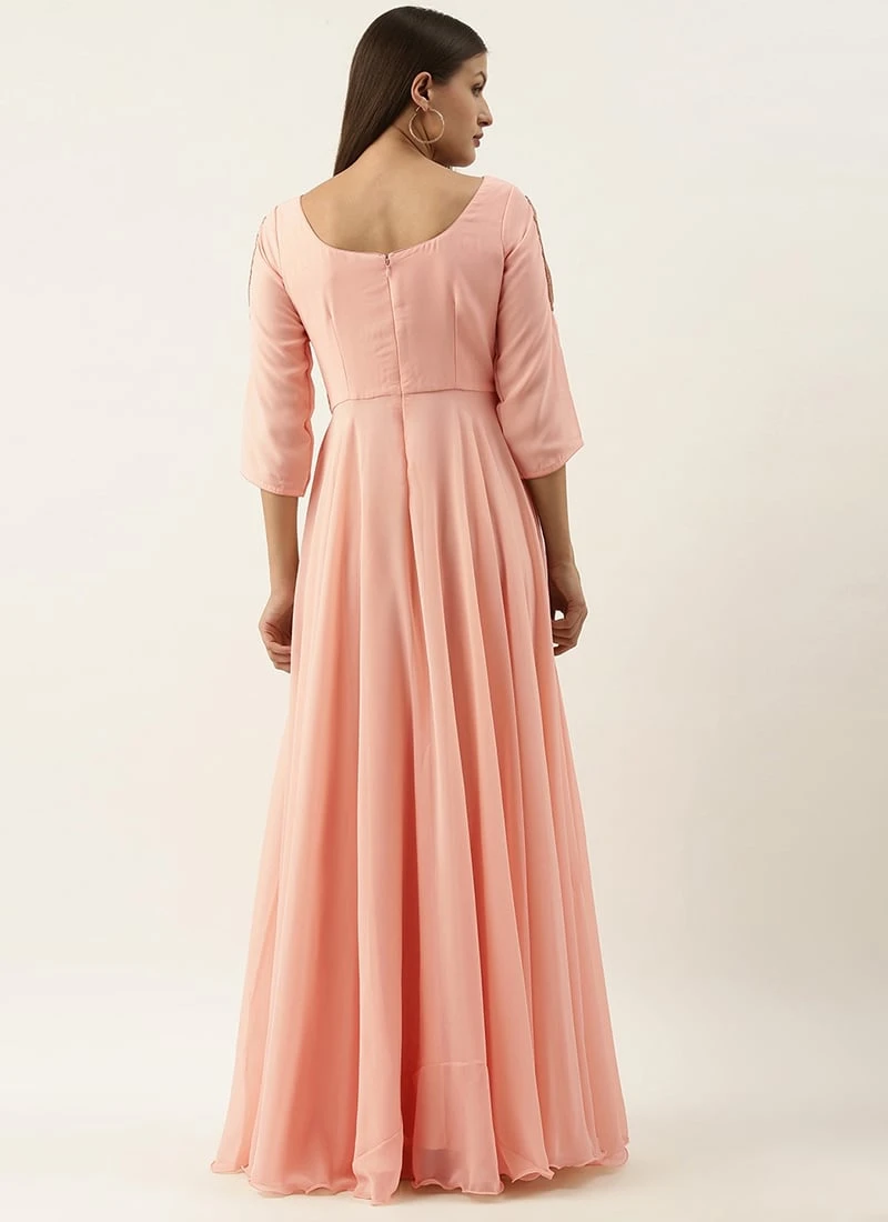 Teen Girls Embroidered Peach Georgette Gown Party Wear
