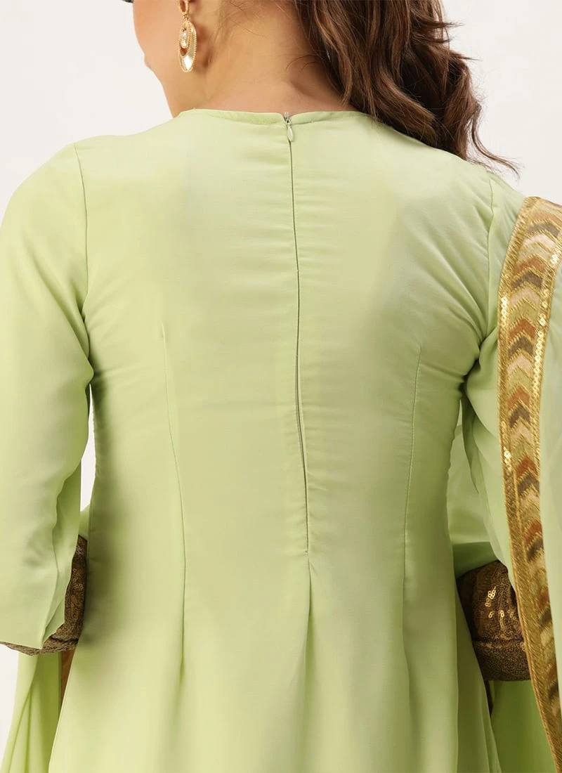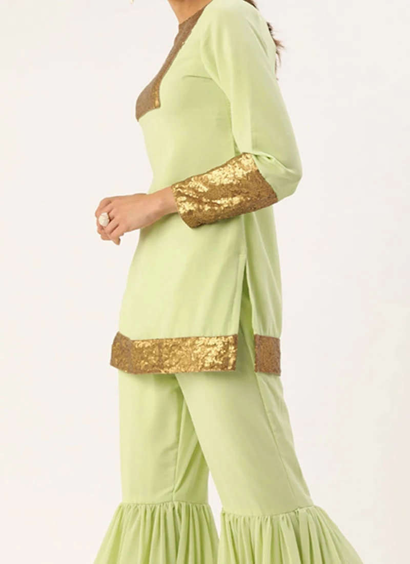 Teen Girls Gathered Flare Green Embroidered Gharara Suit Festive Wear