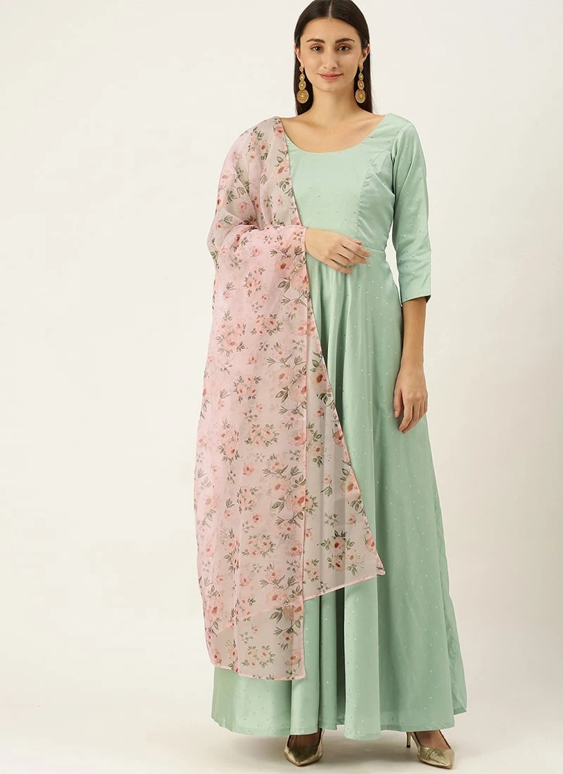 Teen Girls Green Art Silk Abaya Style Anarkali Suit Party Wear