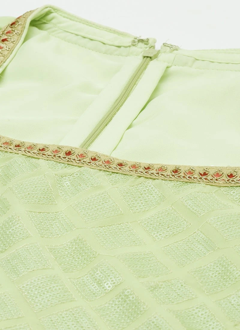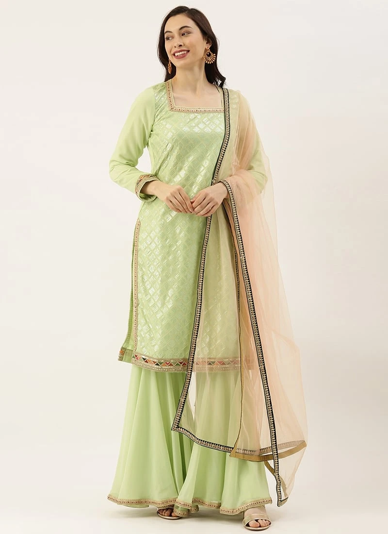 Teen Girls Green Ebroidered Square Neck Sharara Suit Festive Wear
