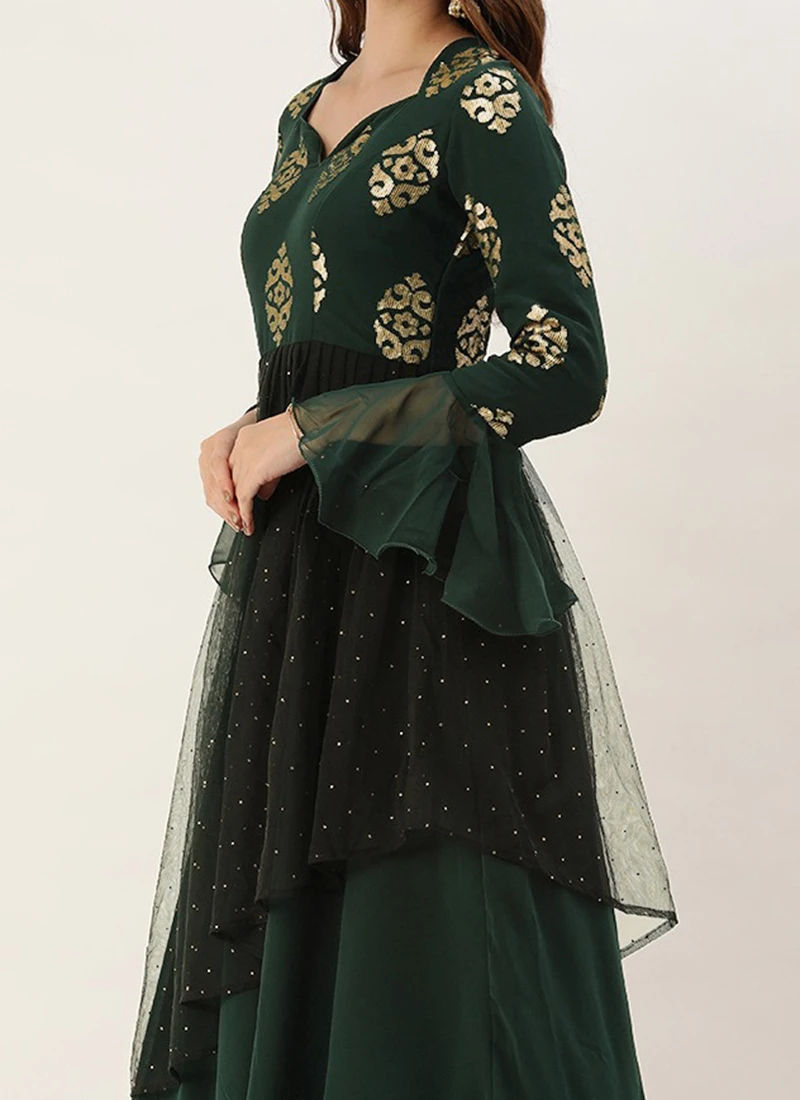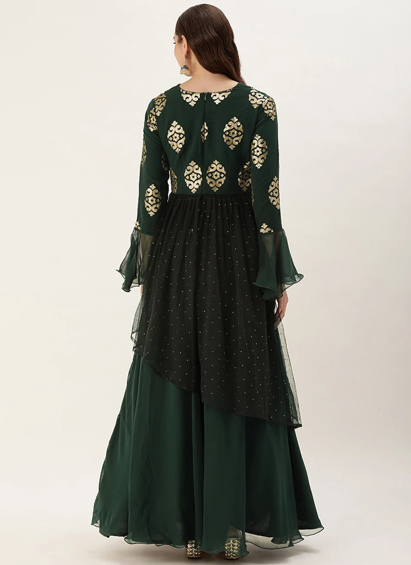 Teen Girls Green Embroidered Georgette Gown Party Wear