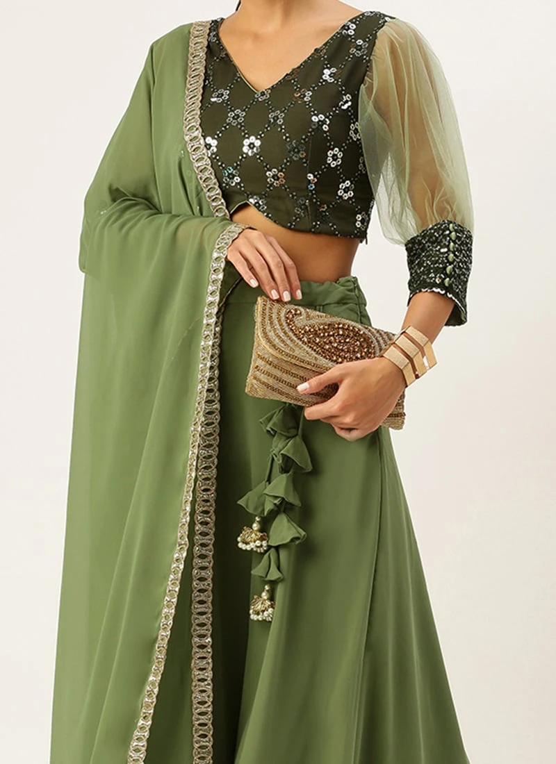 Teen Girls Green Gathered Sleeves Lehenga Wedding Wear