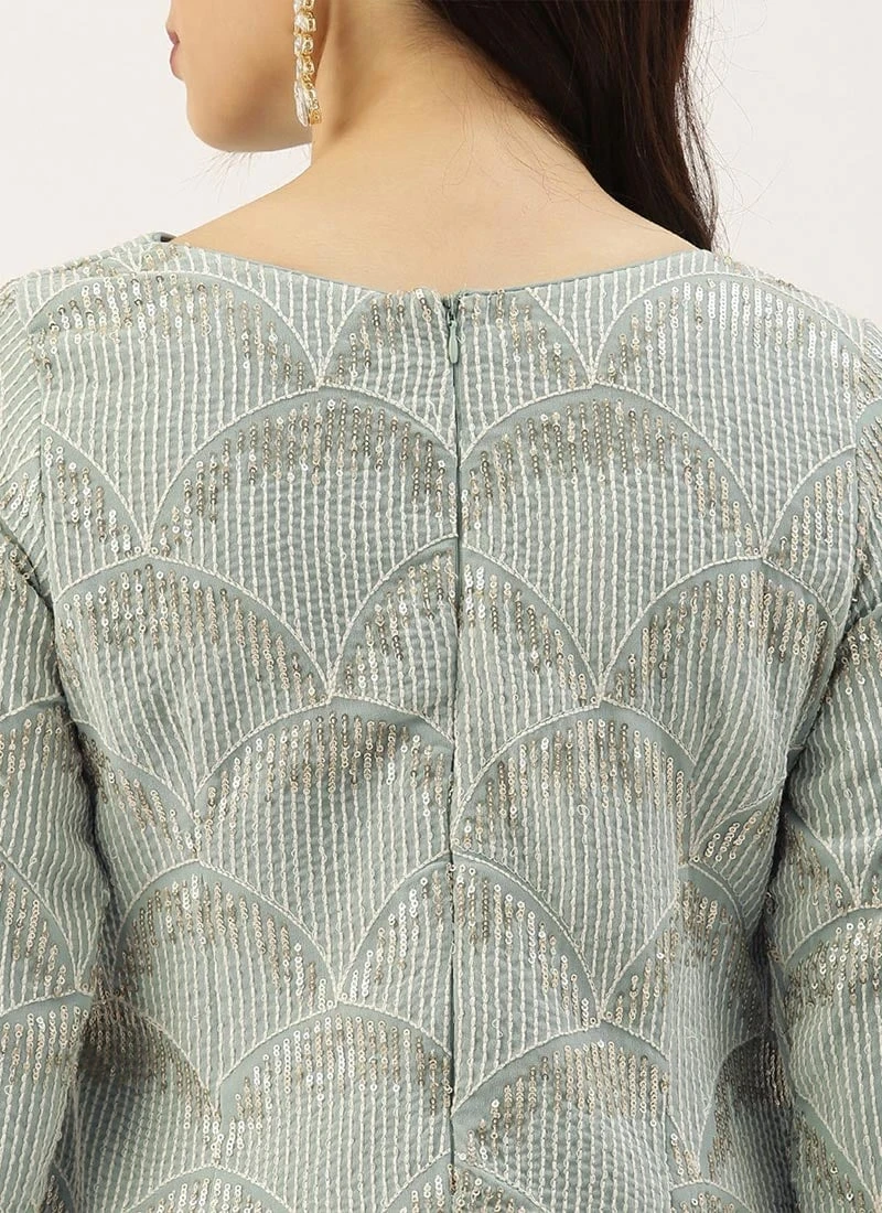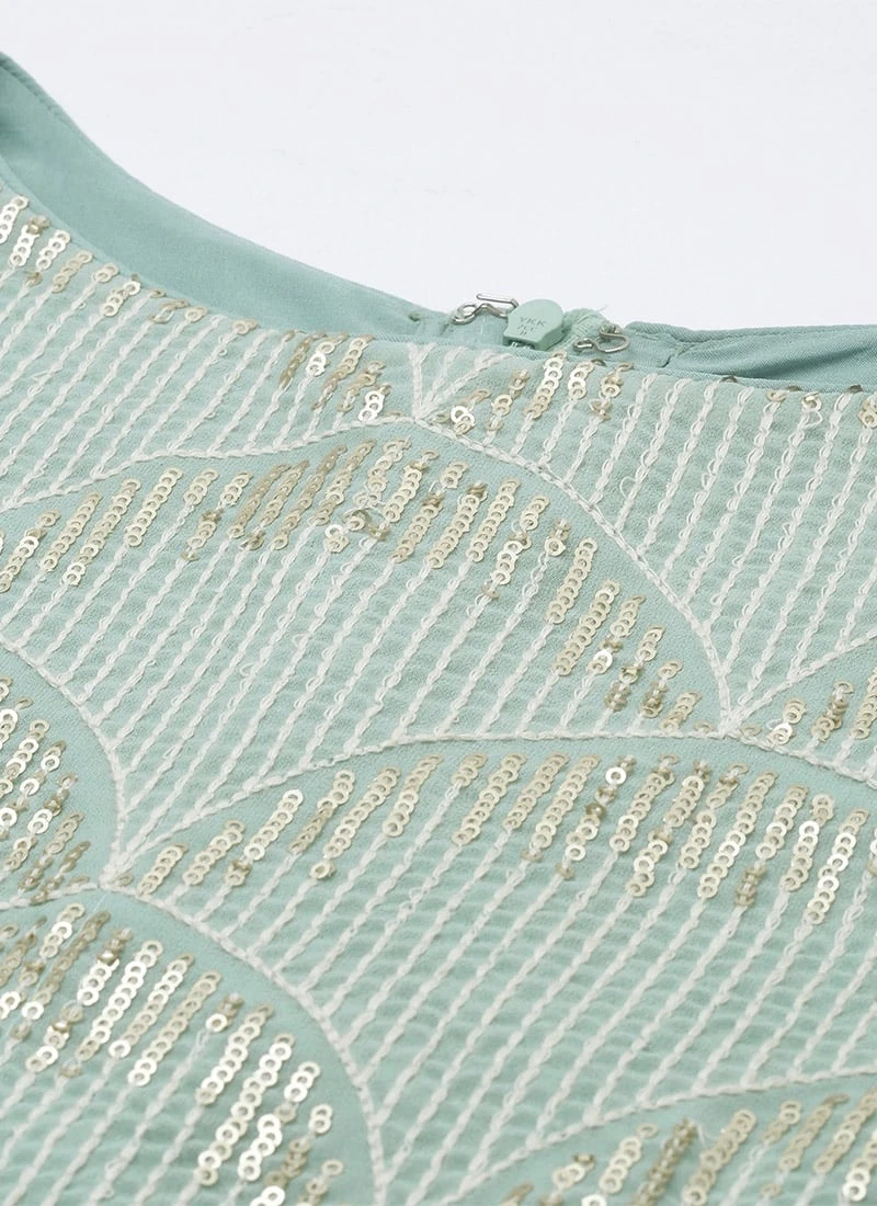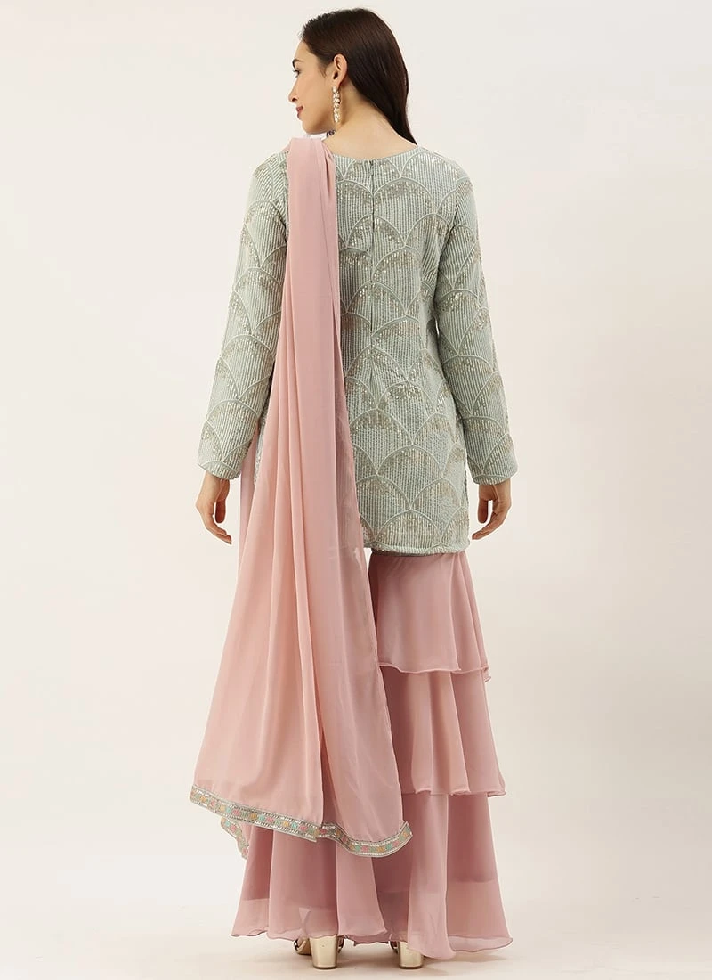Teen Girls Green Georgette Sequins Layered Gharara Suit Party Wear
