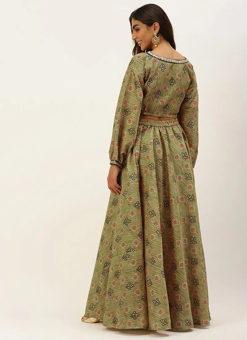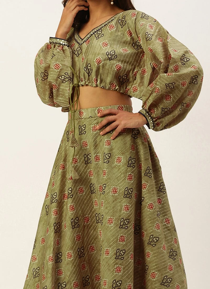 Teen Girls Green Printed Art Silk Co Ords Set Party Wear