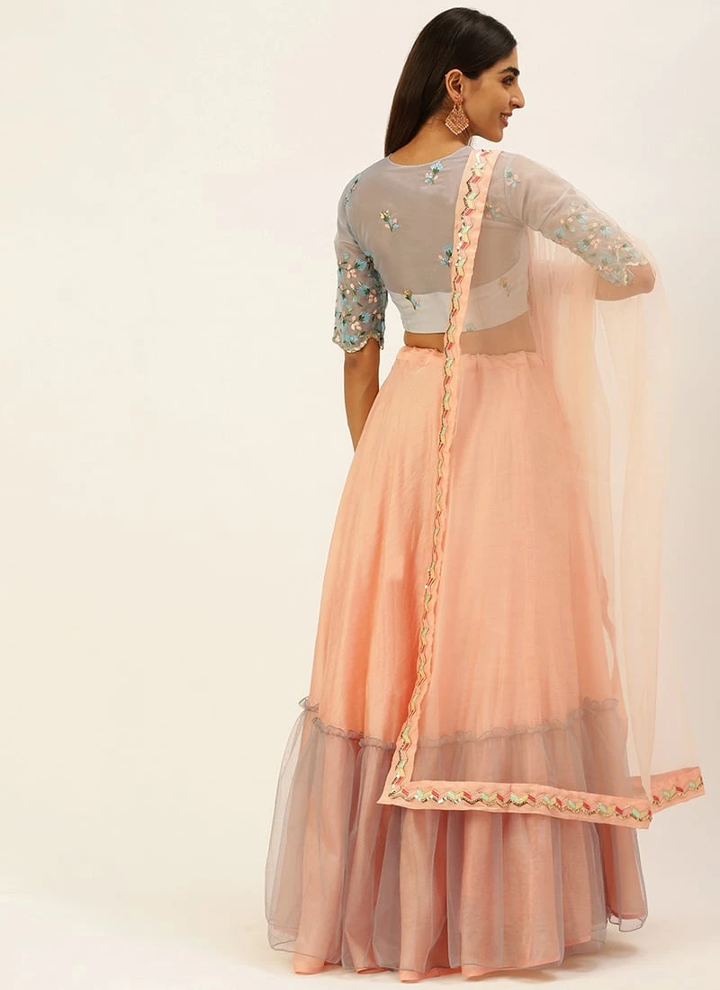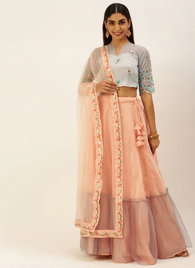 Teen Girls Grey Embroidered Peplum Lehenga Set Festive Wear