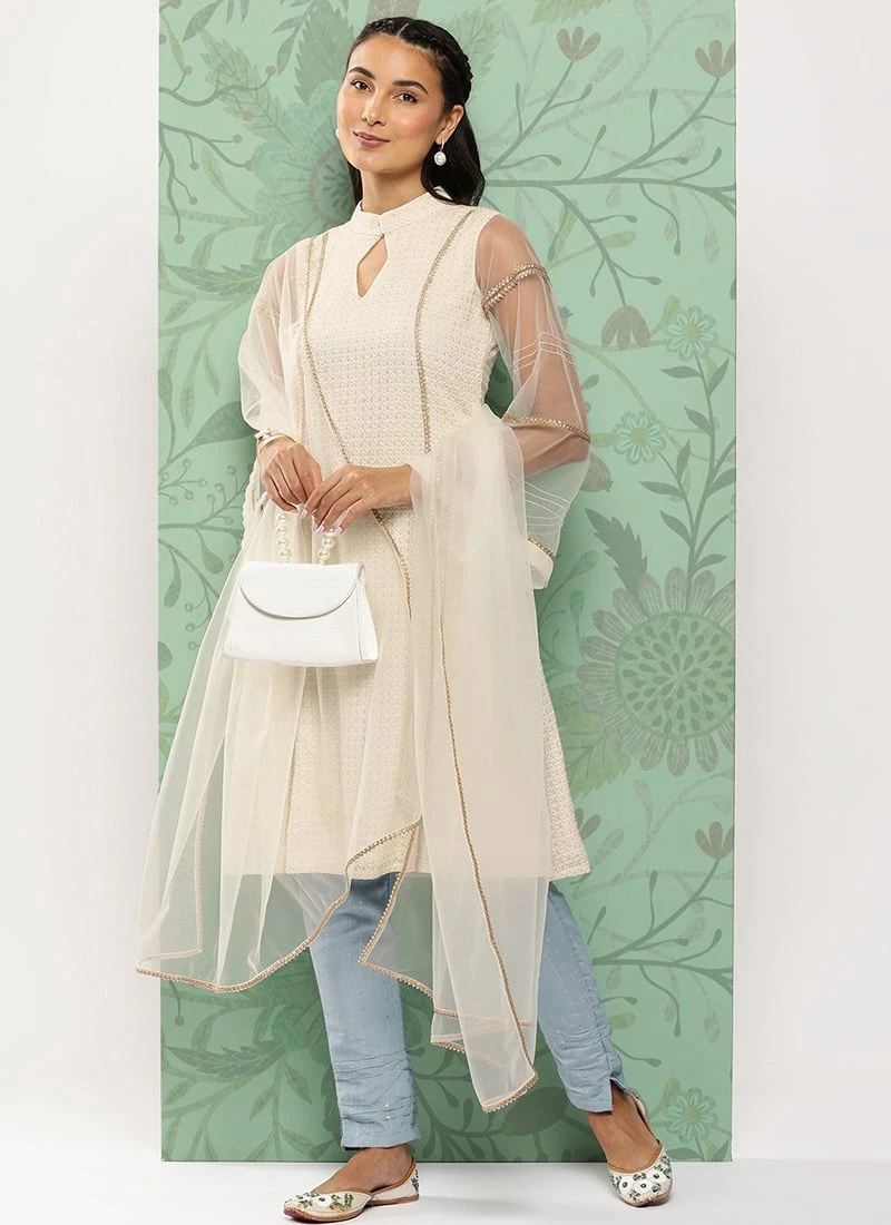 Teen Girls Grey N White Sequin Embroidered Straight Pant Suit Festive Wear