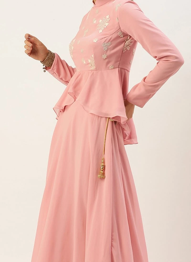 Teen Girls Long Choli Full Sleeve Pink Embroidered Lehenga Festive Wear