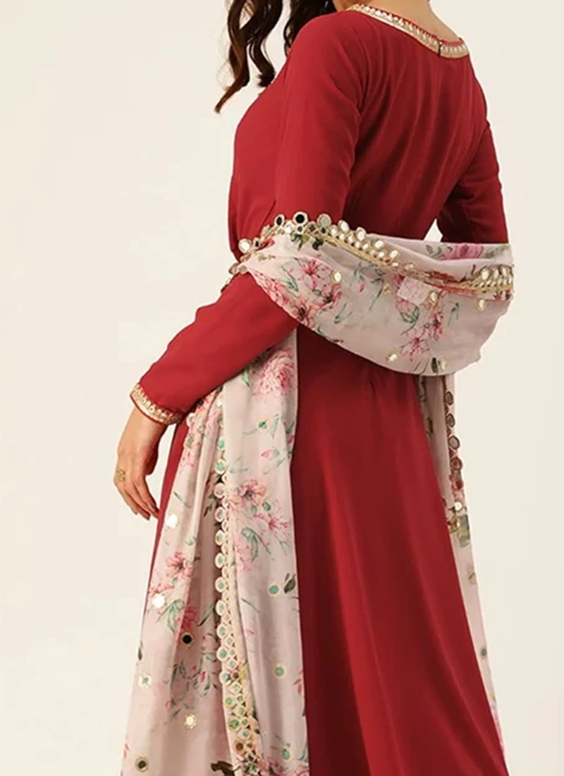 Teen Girls Maroon N Multicolored Floor Length Anarkali Suit Festive Wear