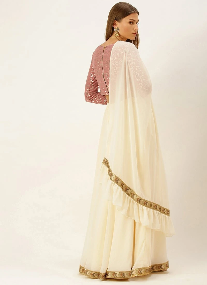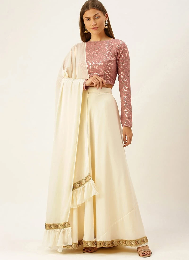 Teen Girls Mauve N Off White Embroidered Lehenga Set Wedding Wear