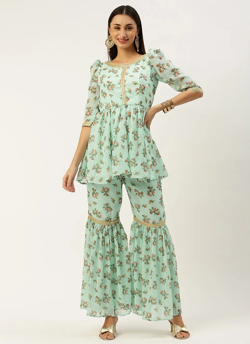 Teen Girls Mint Green Digital Printed Embroidered Co Ords Set Festive Wear