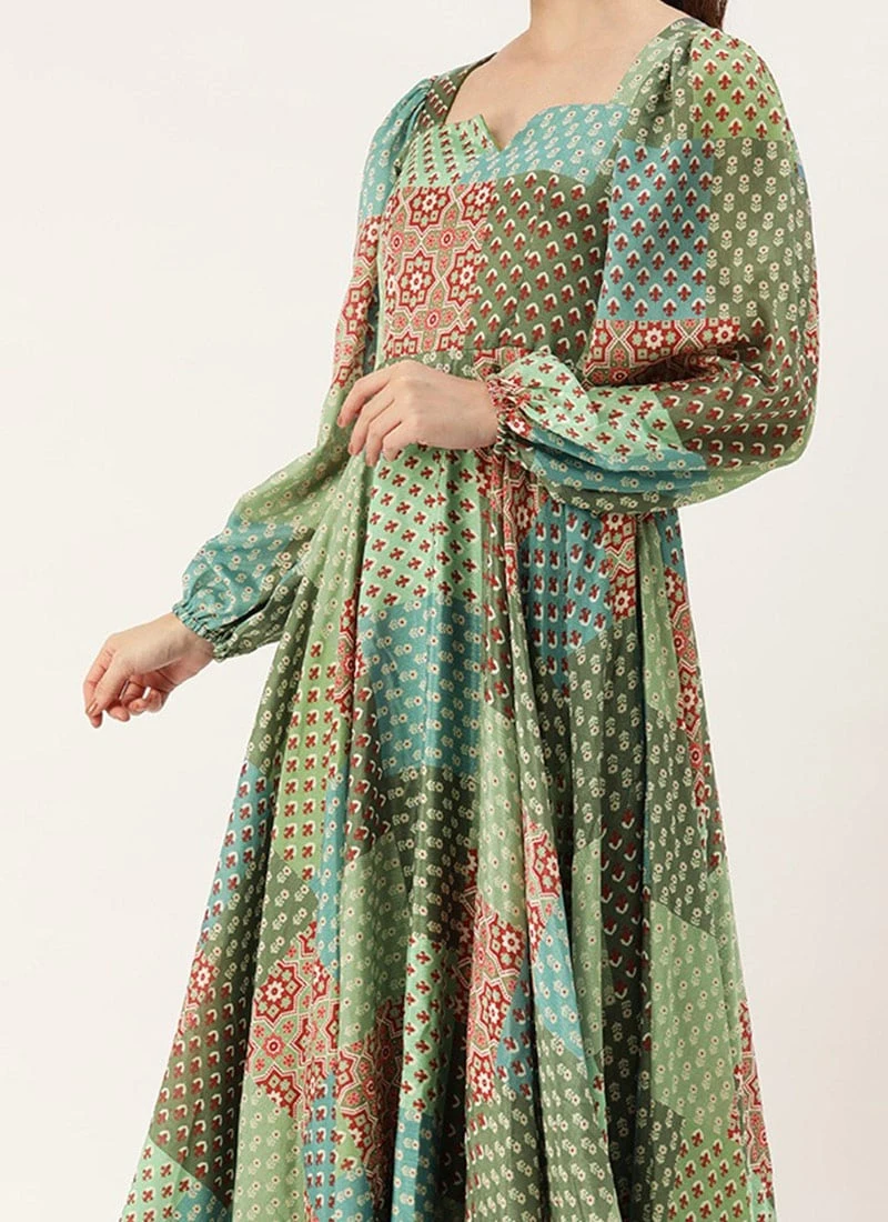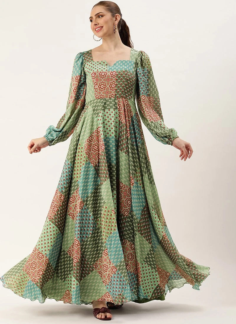 Teen Girls Multicolored Digital Printed Chinon Gown Party Wear