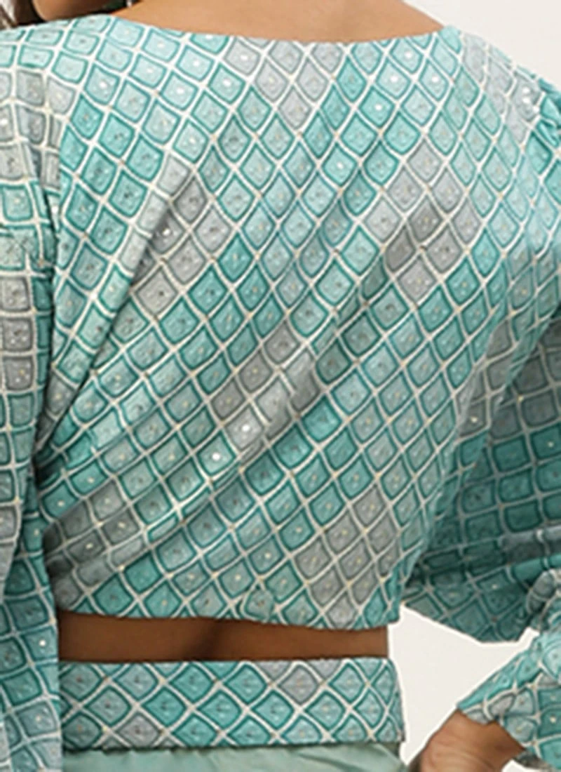 Teen Girls Multicolored Embroidered Crop Top N Palazzo Festive Wear