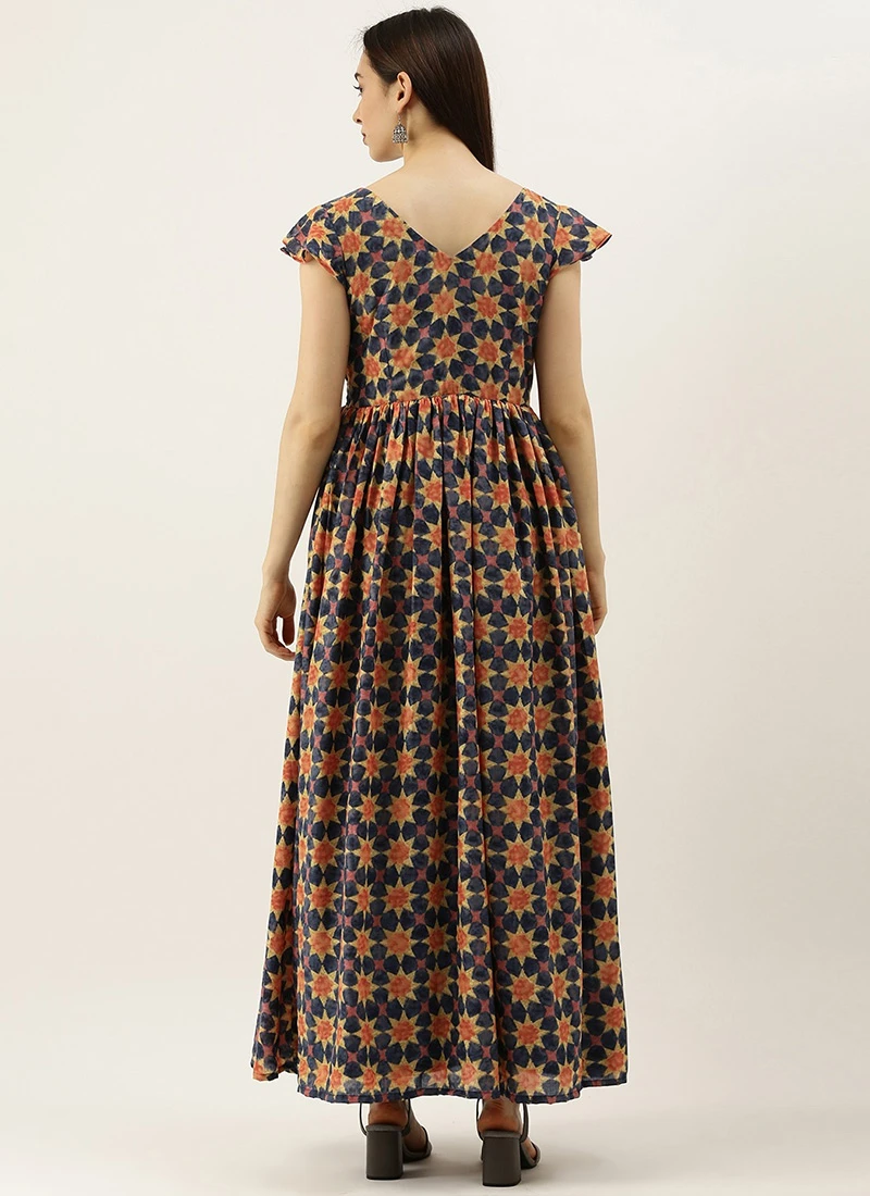 Teen Girls Multicolored Printed Gathered Ankle Length Gown Festive Wear
