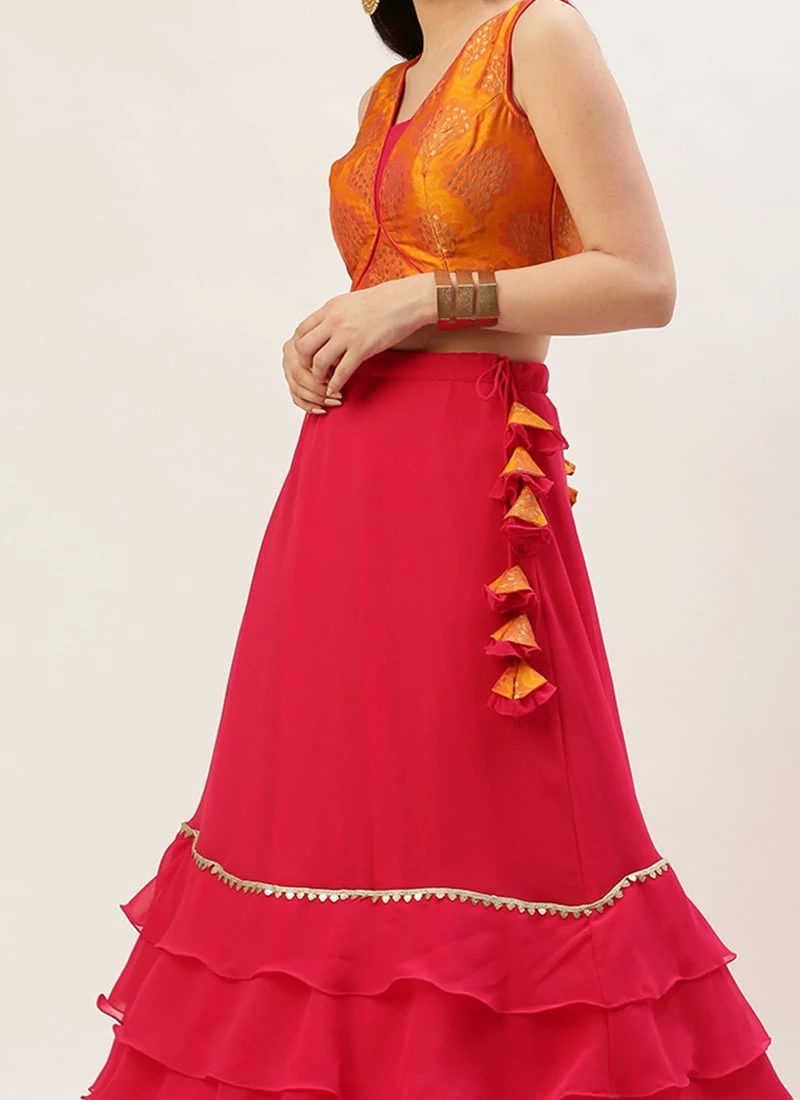 Teen Girls Mustard N Pink Layered Lehenga Set Festive Wear
