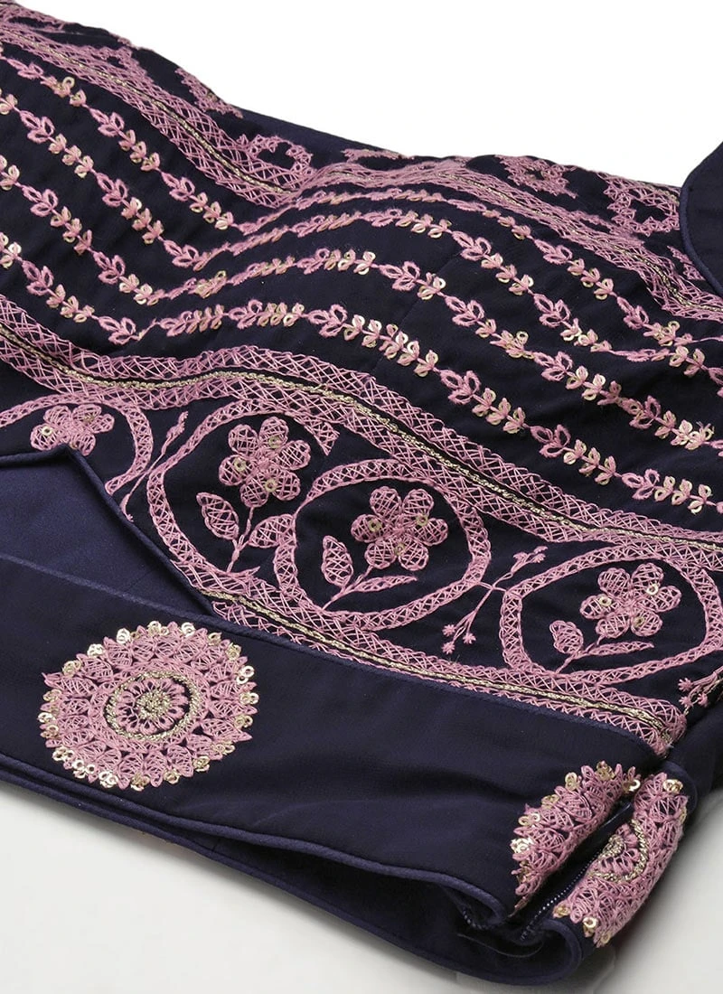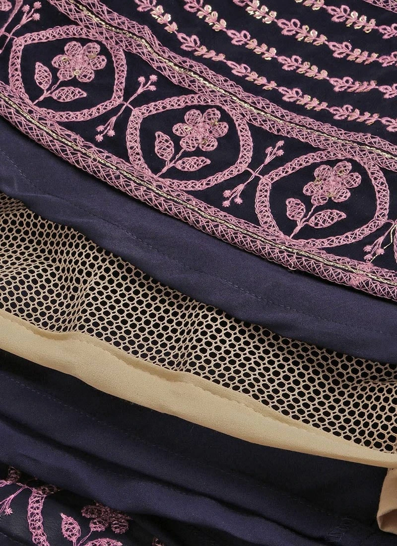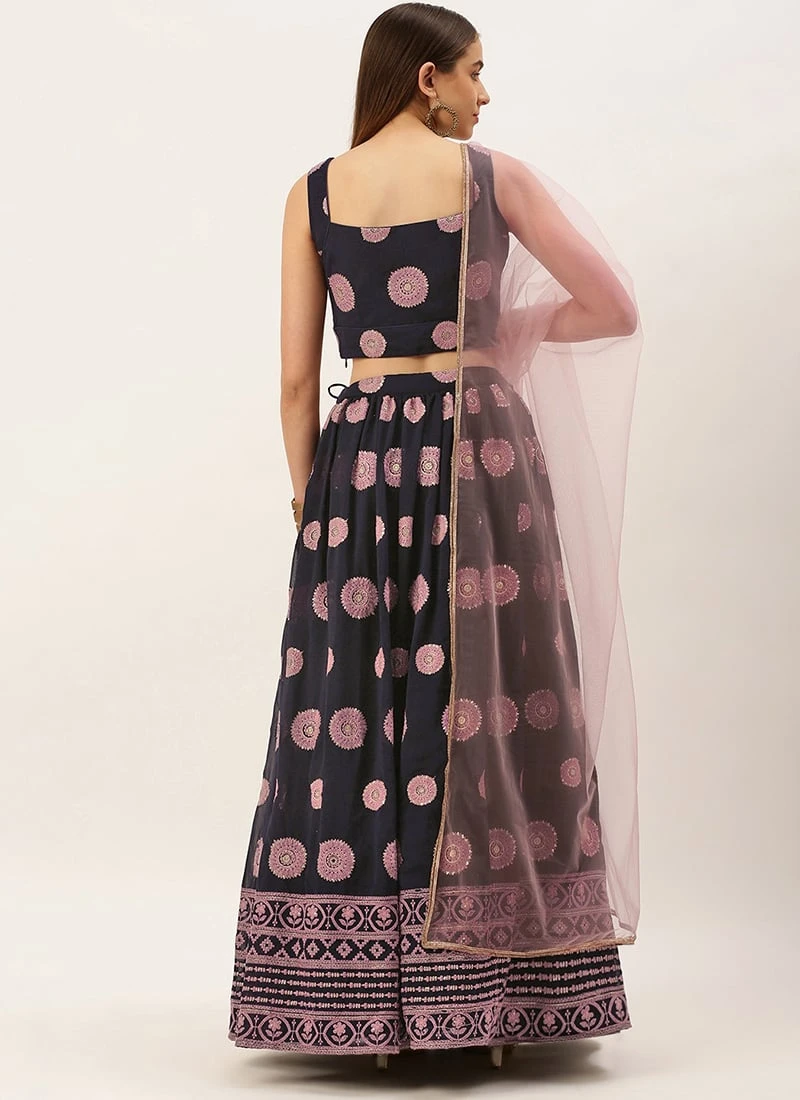 Teen Girls Navy Blue Georgette Embroidered Lehenga Party Wear