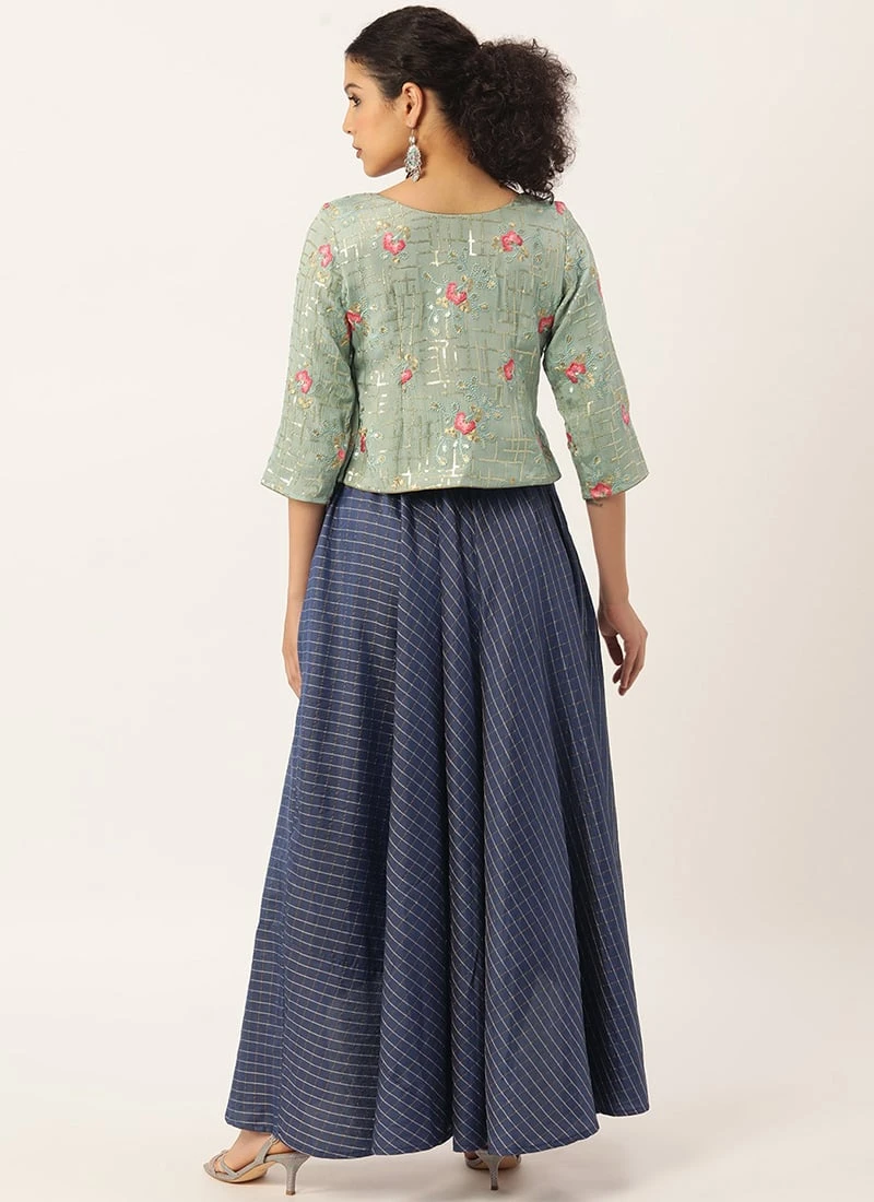 Teen Girls Navy Blue N Blue Chinon Jacket Style Skirt Set Festive Wear