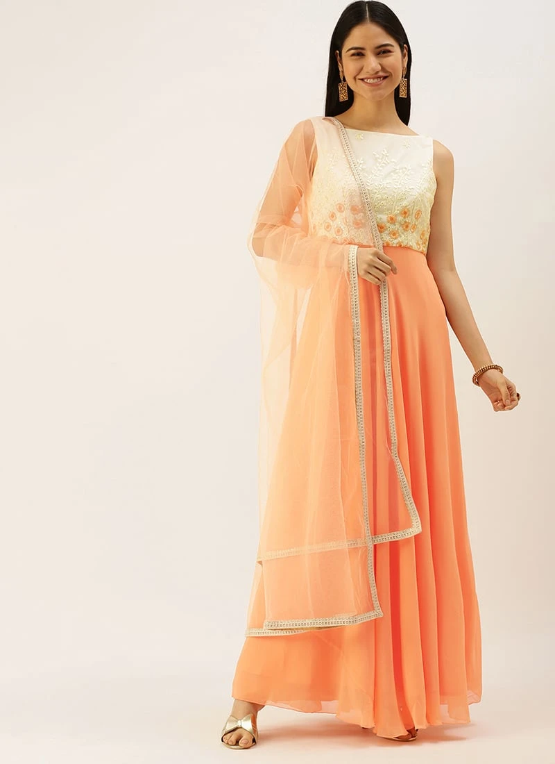 Teen Girls Off White Embroidered Floor Length Anarkali Suit Festive Wear