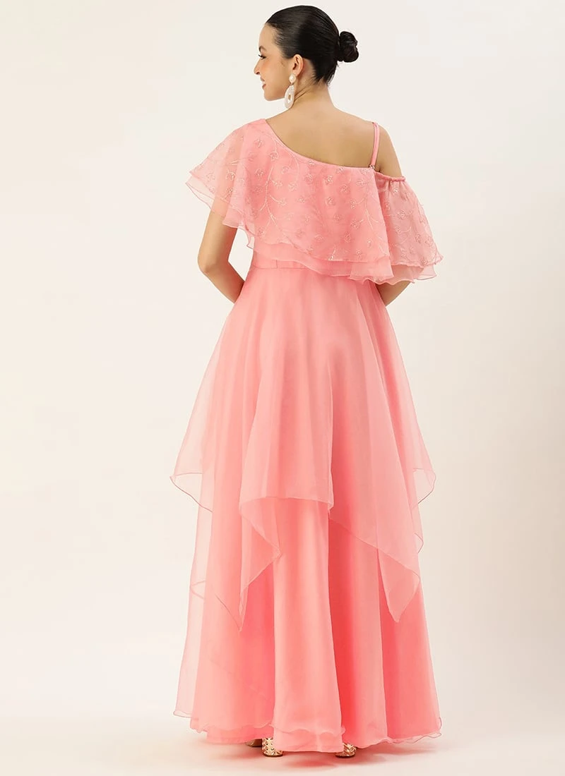 Teen Girls Pink Embroidered Organza Gown Festive Wear