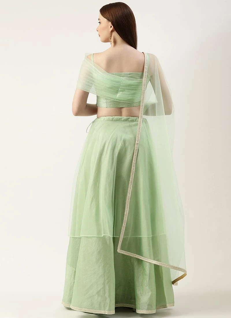 Teen Girls Pista Green Chanderi Embroidered Lehenga Festive Wear