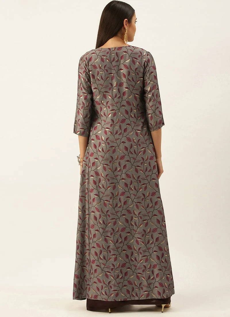 Teen Girls Purple Blouse N Palazzo Pant With Grey Jacket Party Wear