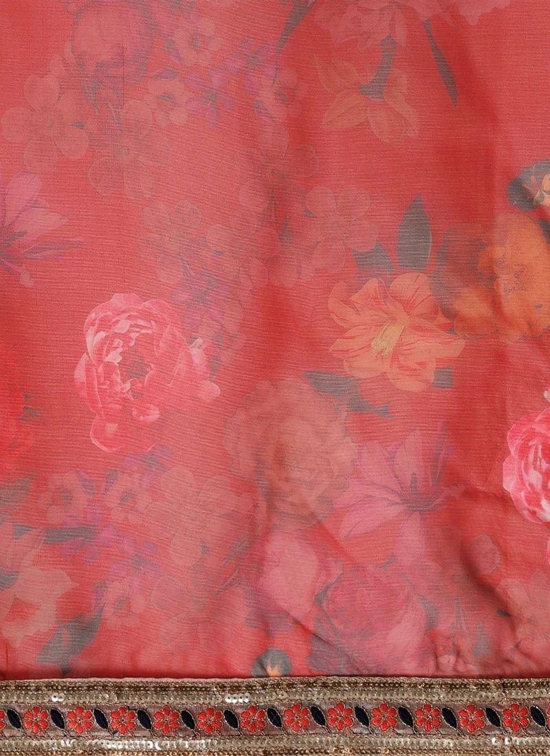 Teen Girls Red Organza Digital Printed Saree N Yellow Blouse Festive Wear
