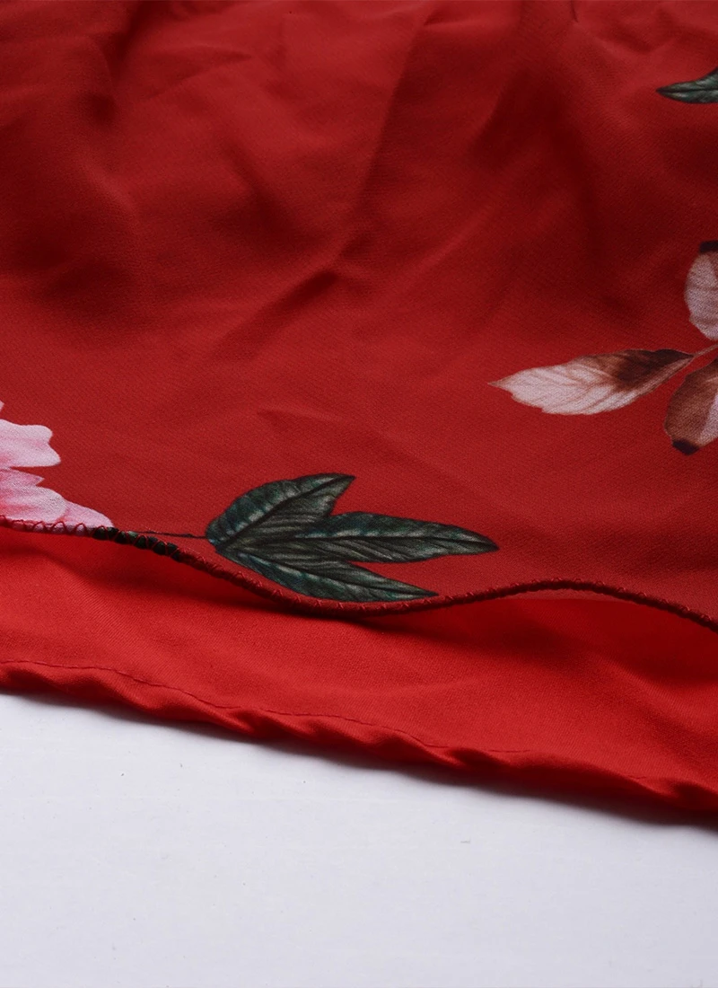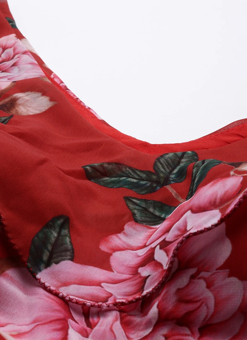 Teen Girls Rust Georgette Digital Printed Ruffle Neck Gown Party Wear