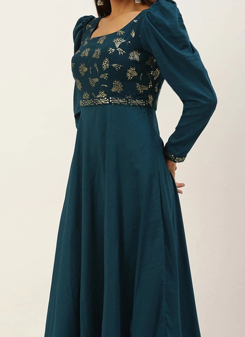Teen Girls Teal Blue Georgette Embroidered N Art Silk Gown Party Wear