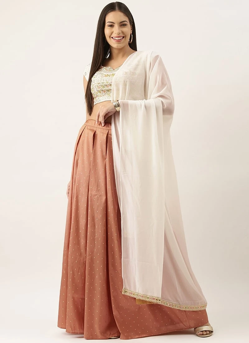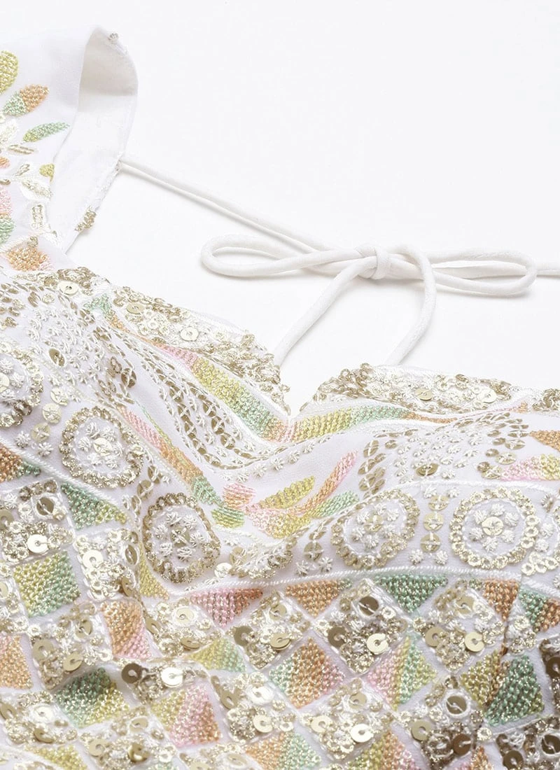 Teen Girls Teen White Embroidered Georgette Lehenga Set Festive Wear