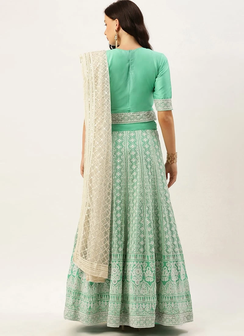 Teen Girls Turquoise N Green Embroidered Kali Lehenga Wedding Wear