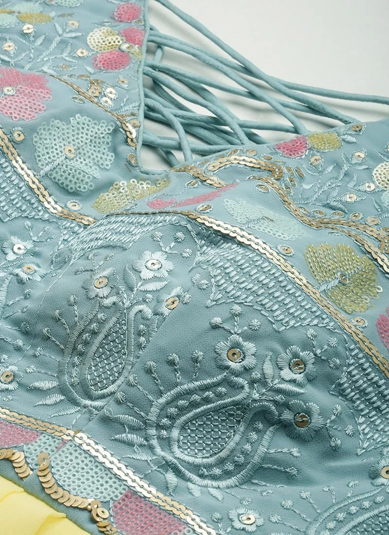 Teen Girls Yellow N Blue Georgette Sequins Gown Festive Wear