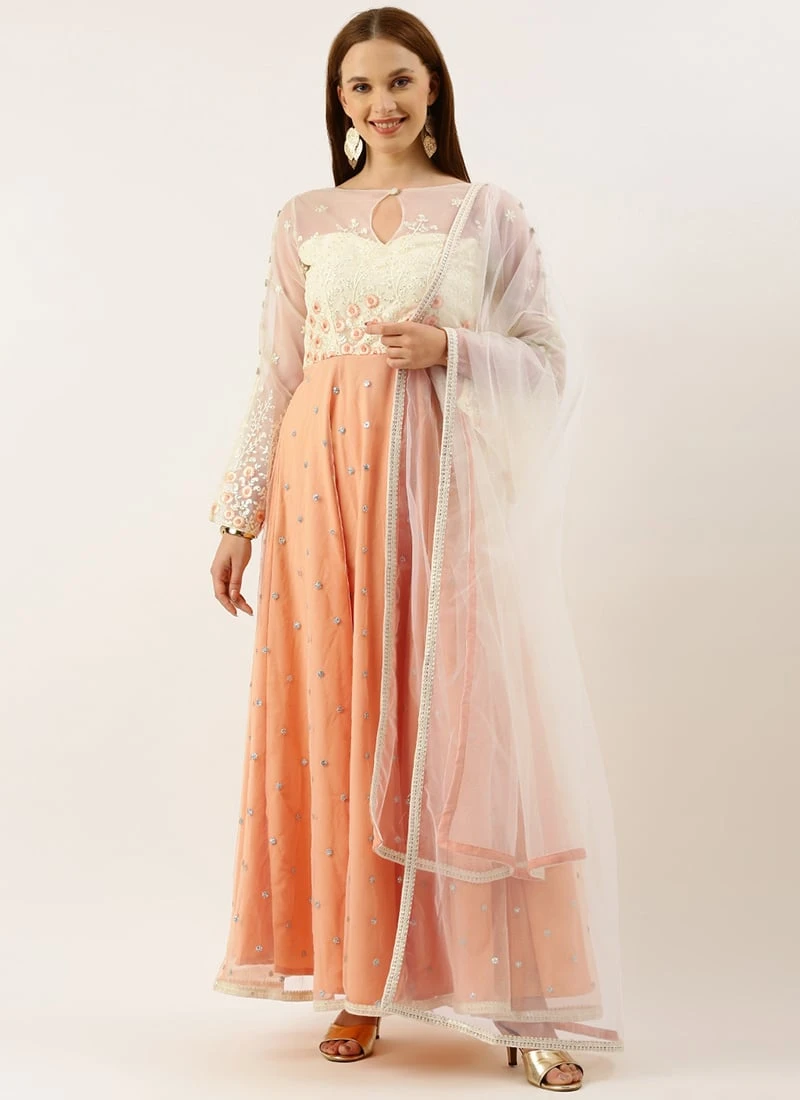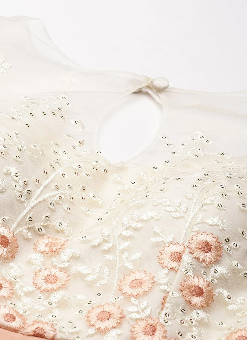 Top From Off White N Peach Embroidered Anarkali Suit After Six Wear