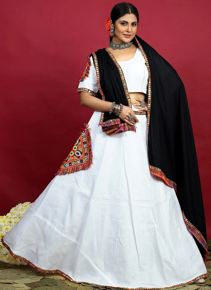 White Blended Kutch N Mirror Work Chaniya Choli Festive Wear