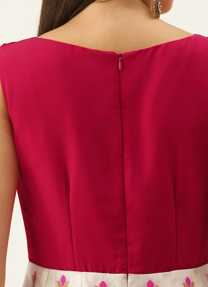 White Jacquard N Hot Pink Georgette Kali Gown Party Wear