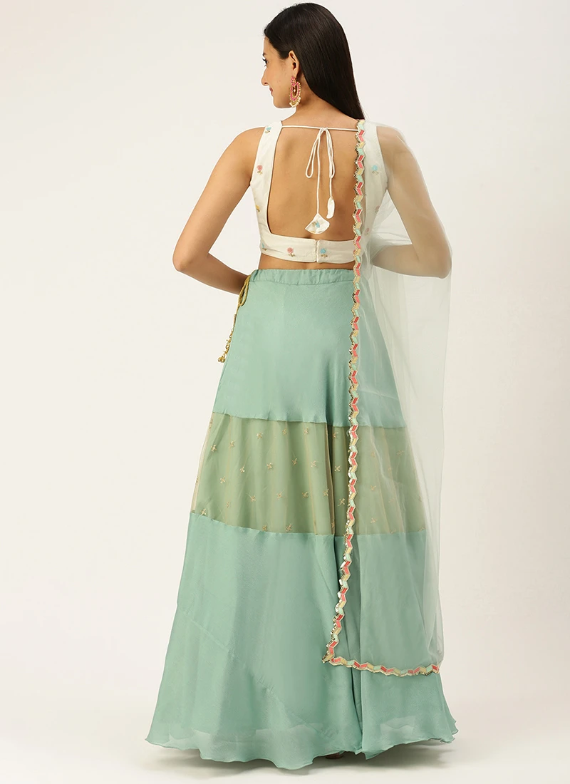 White N Blue Embroidered Lehenga With Potli Bag Festive Wear