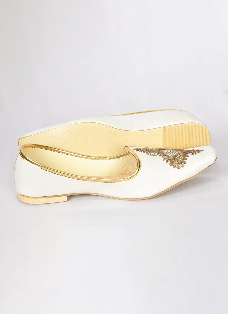 Look stunning in this white color raw silk mojris embellished with hand work and chic for partywear.